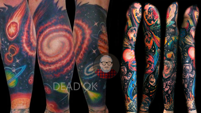 С древних времен людей привлекал космос. Страх и любопытство перед неизведанным не могло оставить равнодушным человеческий разум. И даже сейчас, когда спутники и шатлы бороздят просторы безвоздушного пространства, мы имеем очень мало точных знаний о космосе. Большинство людей воспринимает его как нечто прекрасное и далекое. Не мало выражения это получило и в работах многих тату мастеров. Плотные космические рукава или усыпанная звездами и метеоритами спина - темы, которые хотел бы иметь в портфолио почти всякий татуировщик. Приведем подборку тату работ из подобной области, чтобы ты мог оценить их и выбрать для себя лучшие.